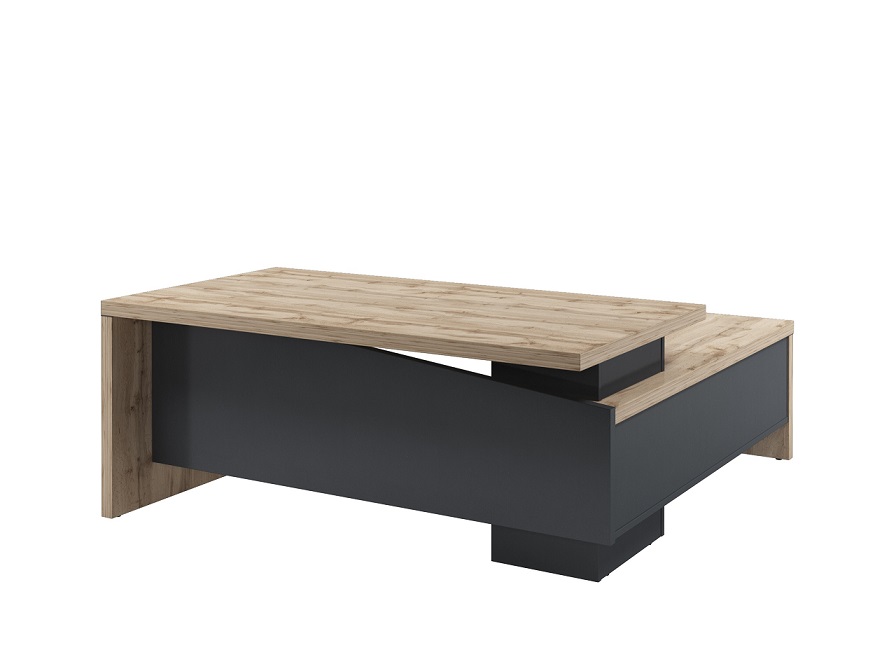 Дуб Вотан – уникальный оттенок, гладкая полуматовая отделка, кайма с тиснением, имитирующим натуральный шпон. Текстура природного дерева в теплых оттенках наполнит пространство элегантным настроением, уравновешенным темным цветом "антрацит", перекидывая фокус внимания на сильный характер владельца. Светлый оттенок сделает помещение визуально более просторным. "Антрацит" благоприятно подчеркивает изящество древесного узора.