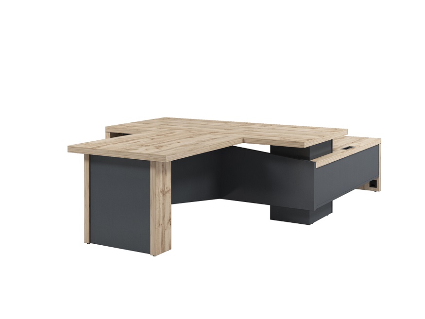 Дуб Вотан – уникальный оттенок, гладкая полуматовая отделка, кайма с тиснением, имитирующим натуральный шпон. Текстура природного дерева в теплых оттенках наполнит пространство элегантным настроением, уравновешенным темным цветом "антрацит", перекидывая фокус внимания на сильный характер владельца. Светлый оттенок сделает помещение визуально более просторным. "Антрацит" благоприятно подчеркивает изящество древесного узора.