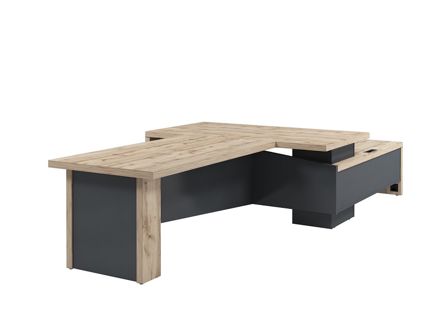 Дуб Вотан – уникальный оттенок, гладкая полуматовая отделка, кайма с тиснением, имитирующим натуральный шпон. Текстура природного дерева в теплых оттенках наполнит пространство элегантным настроением, уравновешенным темным цветом "антрацит", перекидывая фокус внимания на сильный характер владельца. Светлый оттенок сделает помещение визуально более просторным. "Антрацит" благоприятно подчеркивает изящество древесного узора.
