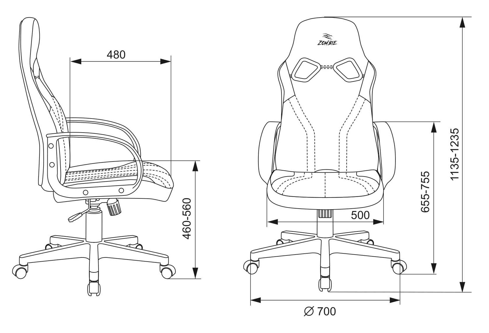 -Спинка: Отдельная от сиденья
