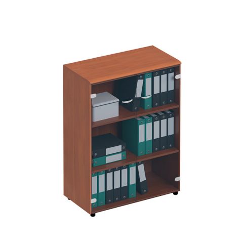 Шкаф средний со стеклянными тонированными дверьми.