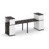 Толщины ЛДСП: Столешницы - 25 мм, царги - 18 мм. Кромка ПВХ: 2 мм по периметру. Цвета ЛДСП: Дуб Винченцо, Сандал Янтарный, Дуб Мали, Кобо. Сечение металлокаркаса (опоры): 50х25 мм. Цвета металлокаркаса и лючков: Черный, Белый, Антрацит, Серый, Латте, Капучино. По покраске изделий из металла (от 10шт) в любой цвет по RAL, обратитесь к вашему менеджеру. Столы устанавливаются на регулируемые опоры - М8. Кромка ПВХ толщиной 0,4мм и 2мм. С тыльной стороны все торцы обработанны кромкой 2мм. Опоры тумб: Труба 50х25, Цвет: Черный, Белый, Антрацит, Серый, Латте, Капучино, Н=30мм Цвета ручек: Белый, Черный, Антрацит Направляющие ящиков: Шариковые, полного выдвижения без доводчика L=350мм. Колеса мобильных тумб:усиленные, прорезиненные D=50мм Тип петель: С доводчиком
