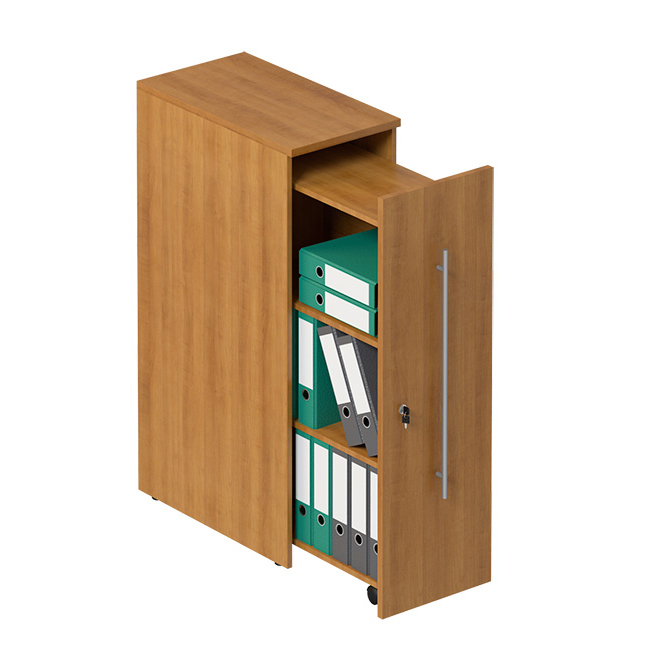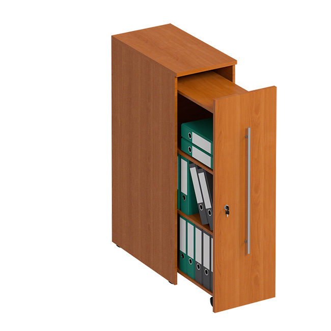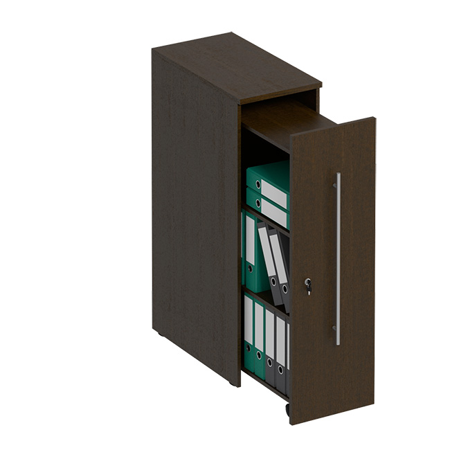 -Материал: ДСтП (ламинированная)-Топ стеллажа: 22 мм-Каркас и фасад стеллажа: 22 мм-Толщина кромки ПВХ: 2 мм и 0,4 мм-Выдвижная секция: 16 мм- Ширина: 380 мм- Глубина: 690 мм- Высота: 1210 мм